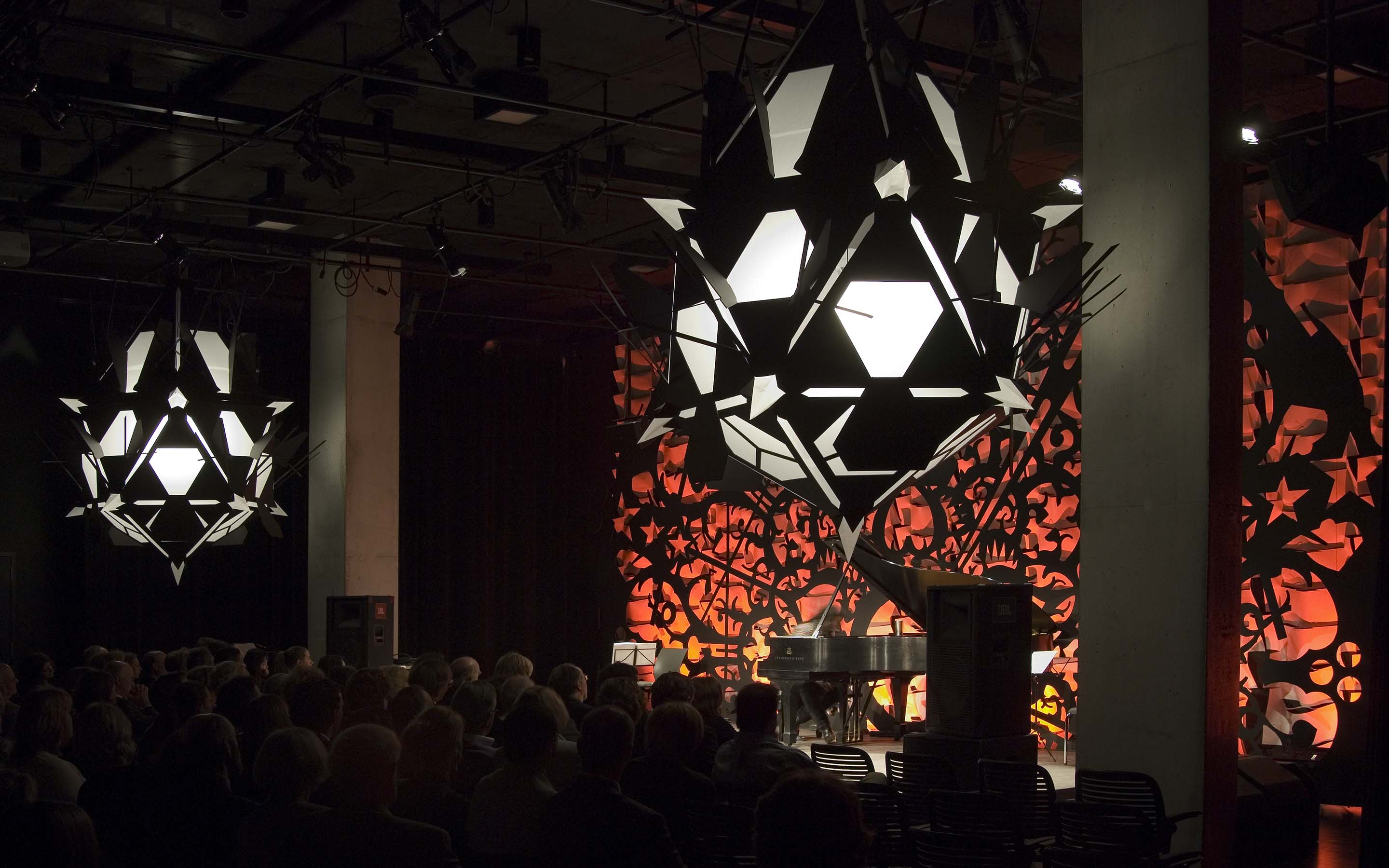 MusicNOW Festival 2006, 2006. Installation created for use at the MusicNOW festival in Cincinnati. Curated by Bryce Dessner. Dimensions: 504 x 216 x 192 inches. Material: paper, mylar, foamcore, two 25w light bulbs. Lead assistants: Paul Gabrielli, Yasuko Shingu. Installation assistance: Sally Dessner, Bryce Dessner, Rachael Elliot. Photography: © Tony Walsh.