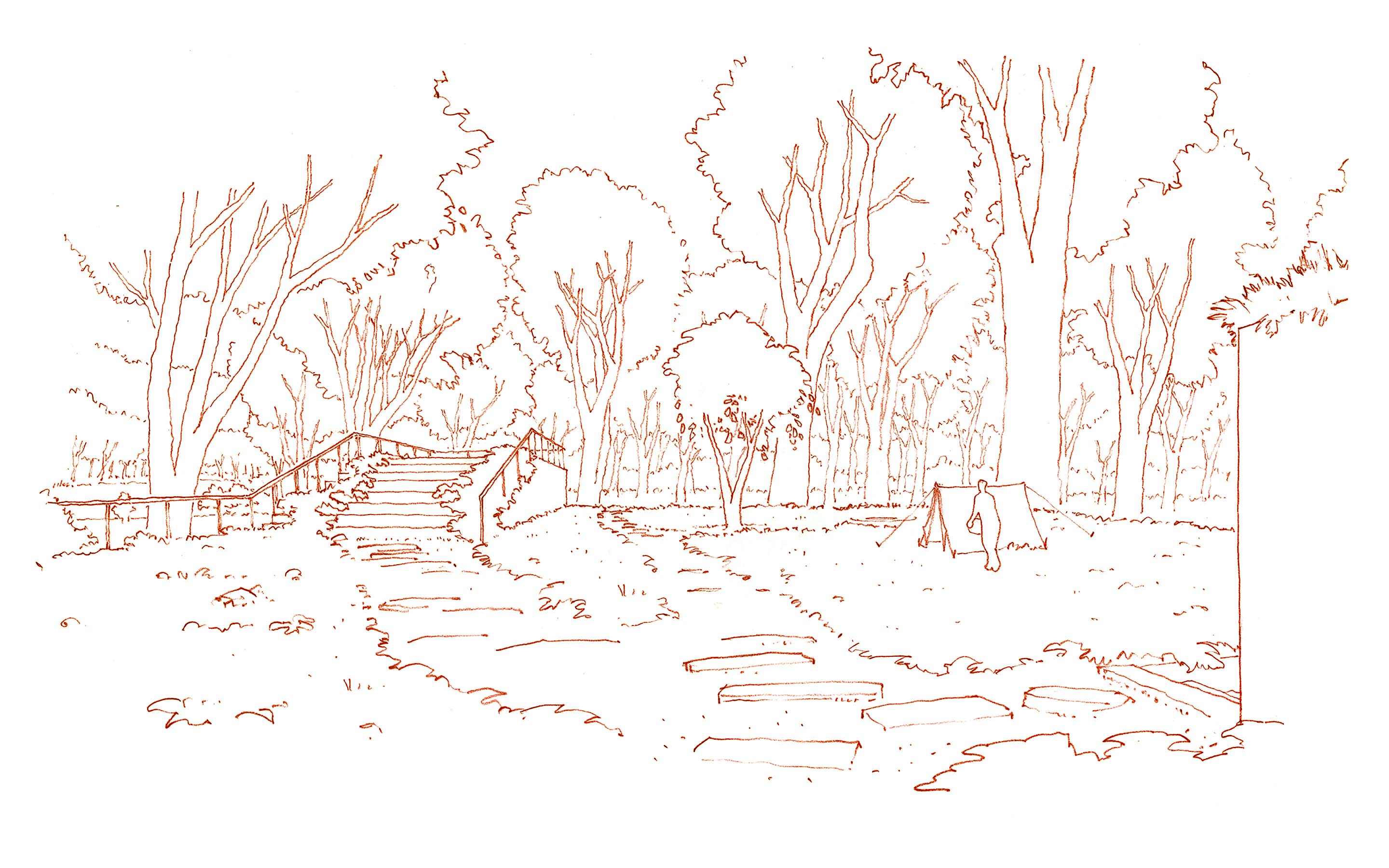 Rock Bottom, 2012. Schematic design for an overnight cabin along the James River near Richmond, Virginia. Project team: Karl Jensen with ABA Studio.