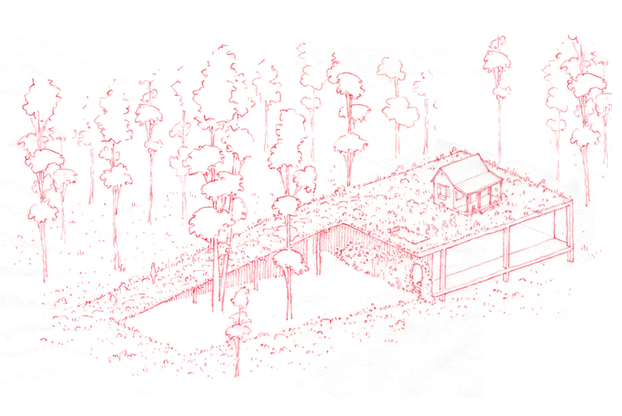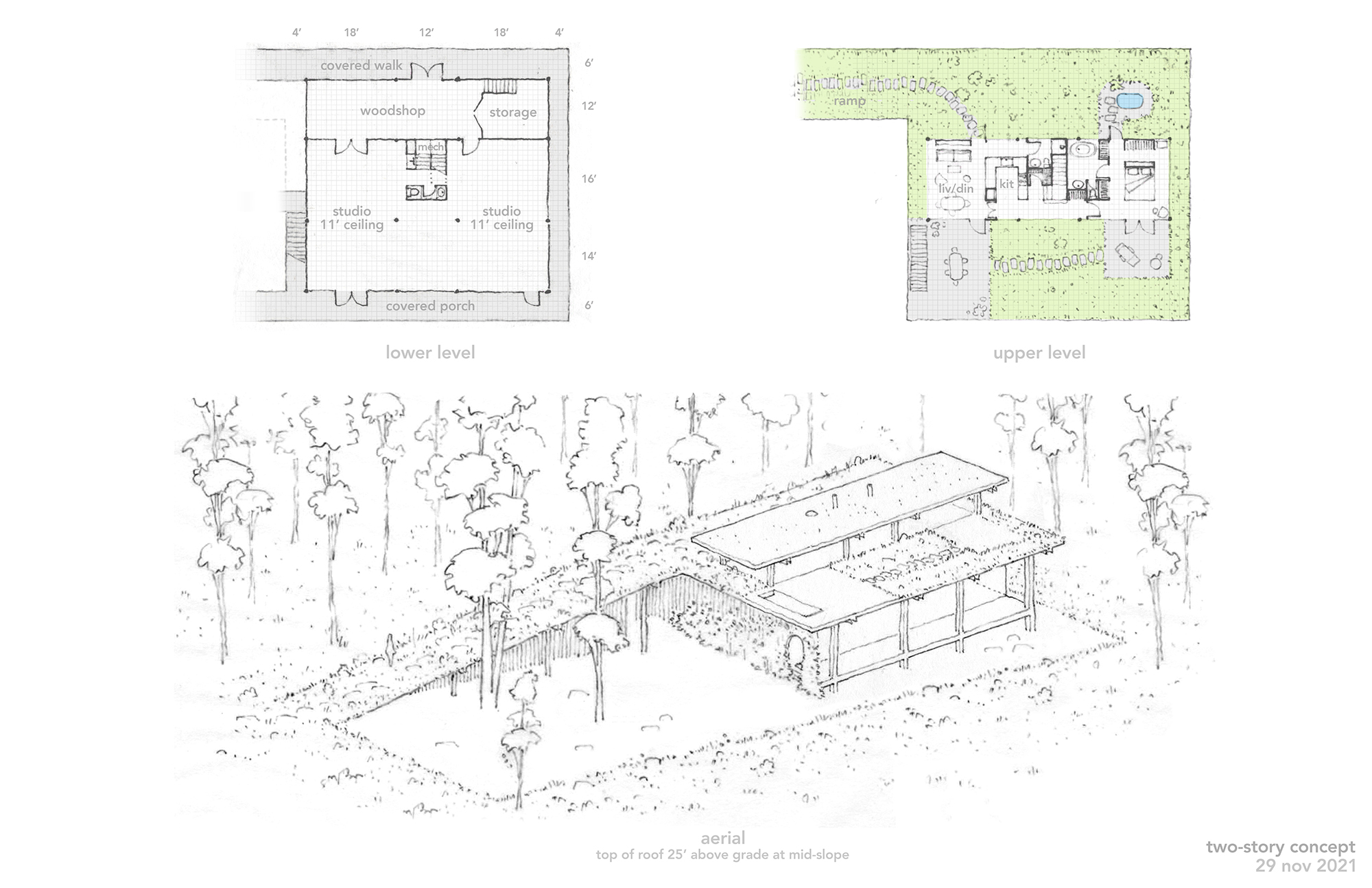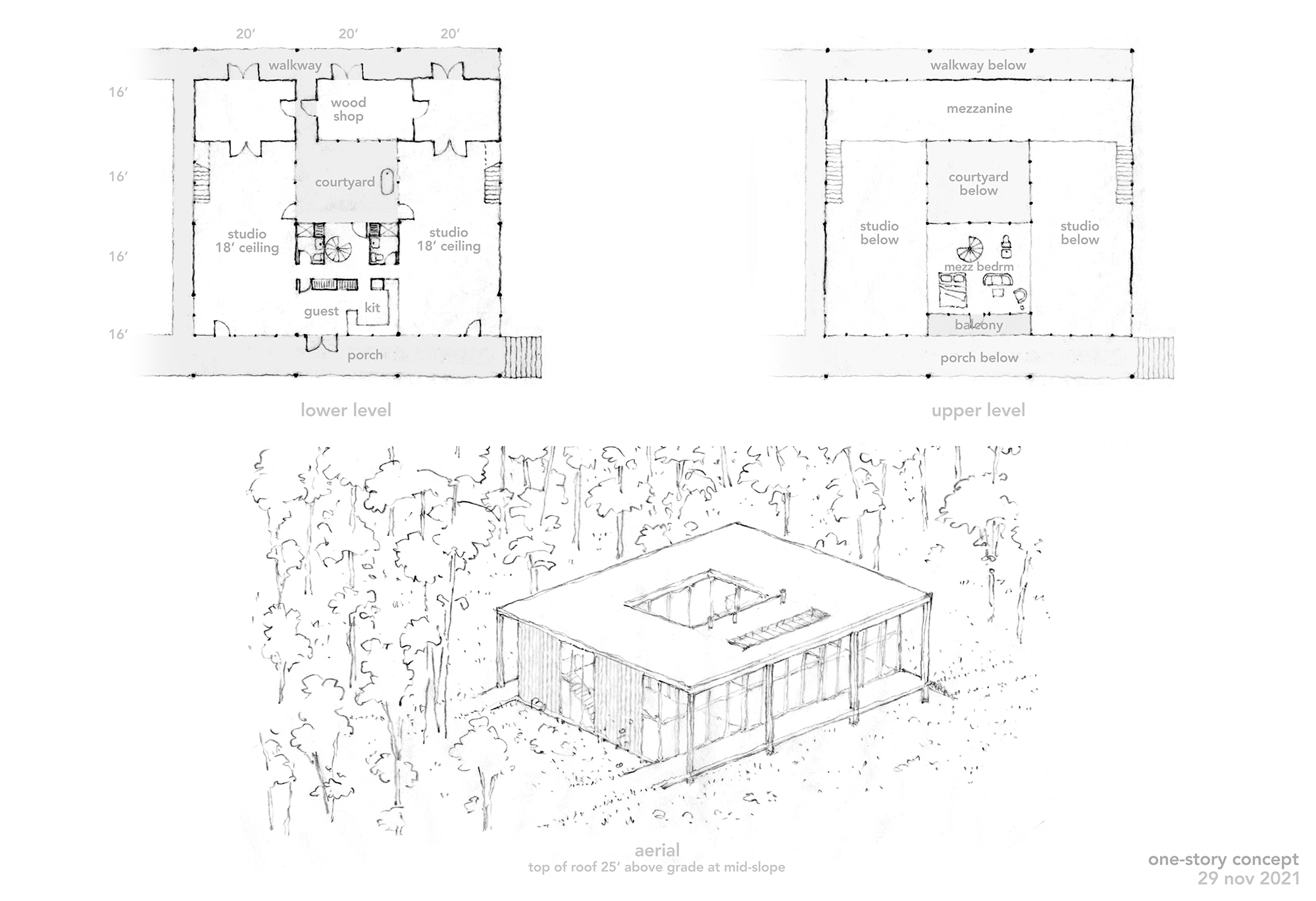 , 2022.Conceptual design sketches of a studio for two artists.